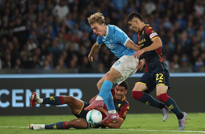 那不勒斯2-1热那亚 安古伊萨、霍伊伦破门