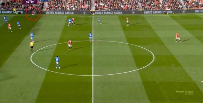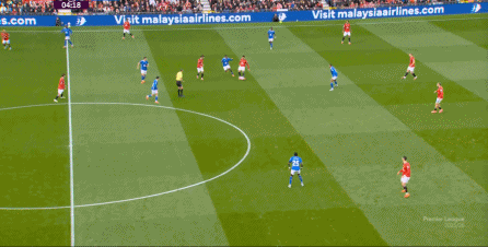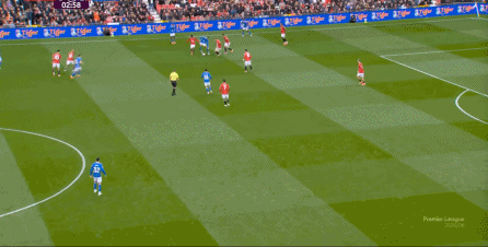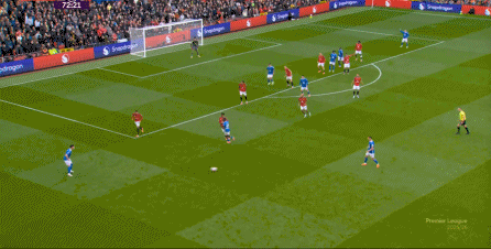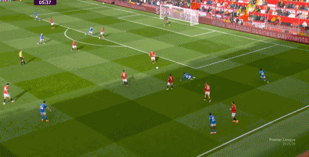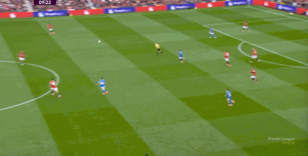 于是在第8分钟,曼联就再次利用到了343打四后卫球队的体系优势,阿玛德-迪亚洛进入空位得球: