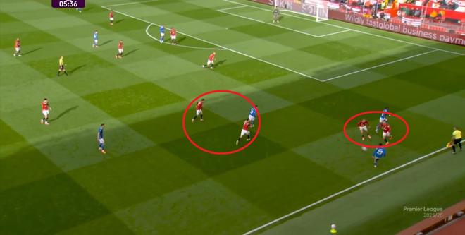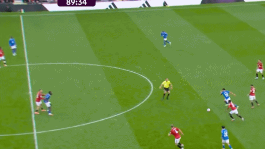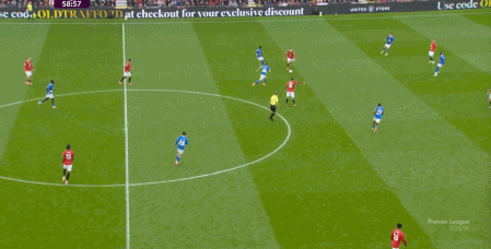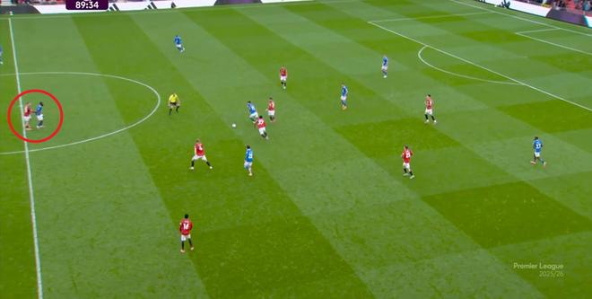 在这次5防3成功之后,曼联立刻就打出了反击,利用的其实就是阿玛德-迪亚洛这一点,只要摆脱掉对方防守意识可能不够的边锋球员,就会立刻进入到谁都管不到的空位里:
