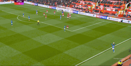 所以,这场比赛的曼联在上半场打得不错,包括此后在谢什科和姆贝乌莫的操作上,右半扇打出了一些进攻内容: